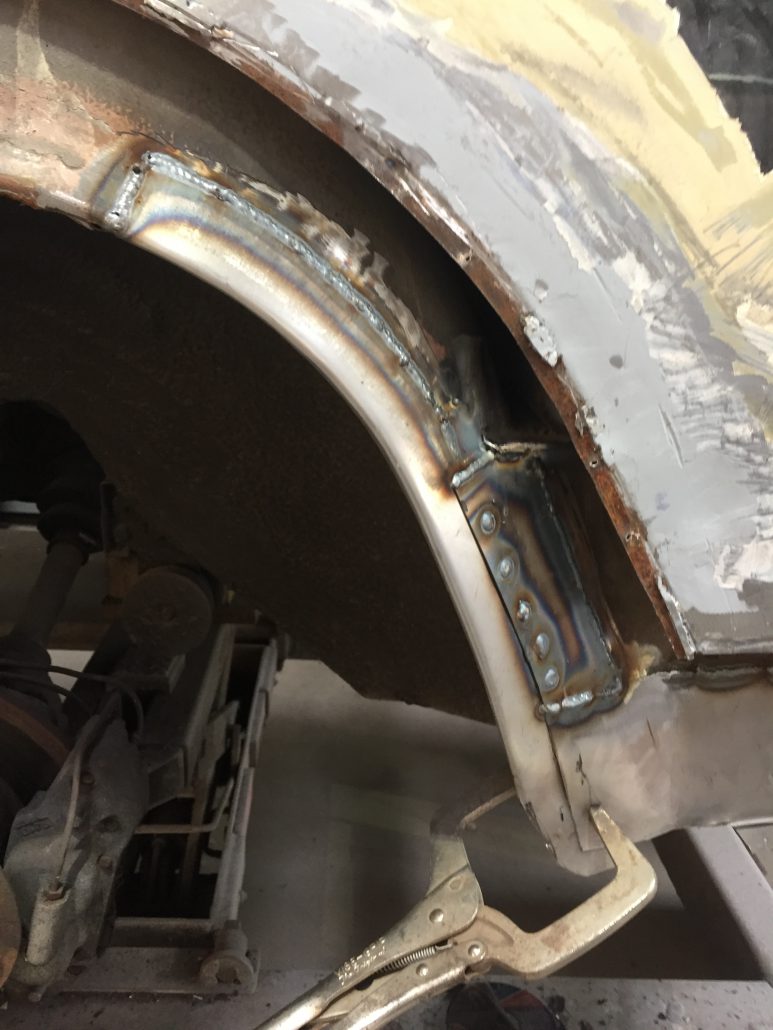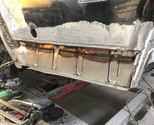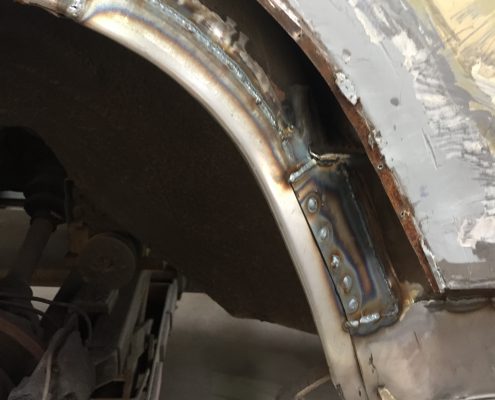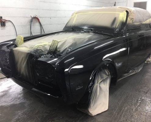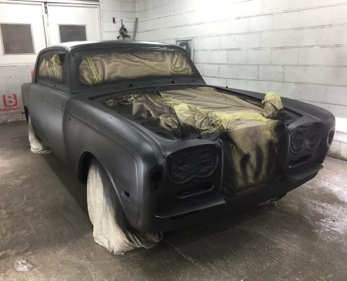 This classic Bentley came in to us for new sills and rear wheel arches but due to a poor quality previous respray we ended up carrying out a full bare metal repaint.